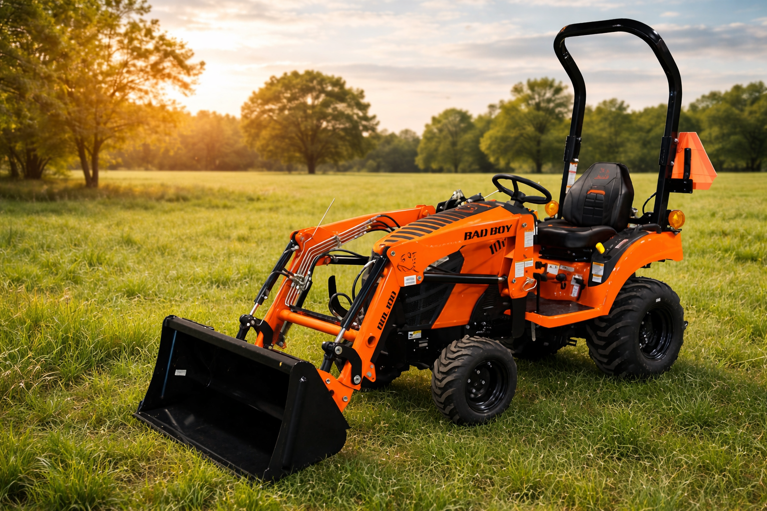 For added versatility, the 1022 can be paired with the BBL100 front loader, featuring a 48″ bucket, 72.7″ lift height, and 617 lb. lift capacity, making it well-suited for light material handling and landscaping tasks.